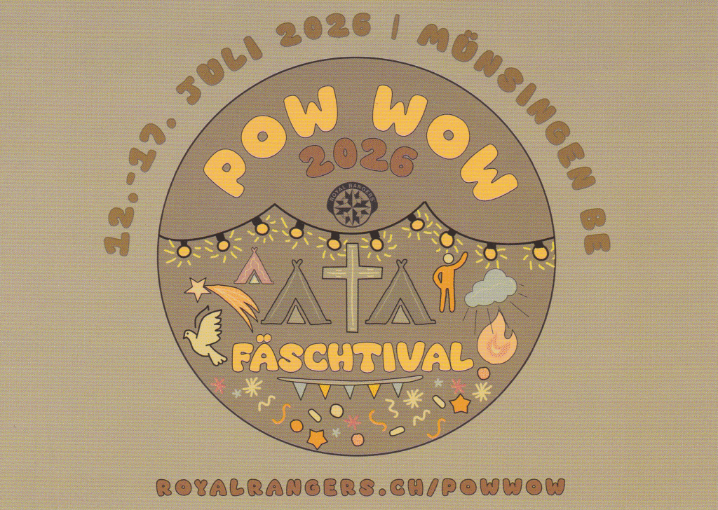Ein aufregendes Ereignis steht uns nächsten Sommer bevor: das PowWow 2026: Stammposten aus der ganzen Schweiz treffen sich im Sommer zu einem gemeinsamen Lager. Nätürlich mit coolen Spielen, neuen Freunden, spannenden Ausbildungen, knackigen Inputs und grandiosem Worship.